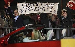ورفع المتظاهرون لافتات كتب عليها 'لنضع حدا للبنك المركزي!' و'عندما يسرق الاغنياء الفقراء، يسمون ذلك اعمالا، وعندما يدافع الفقراء عن انفسهم، يسمون ذلك عنفا'، و'فلنقض على جشع وول ستريت قبل ان تقضي على العالم'.