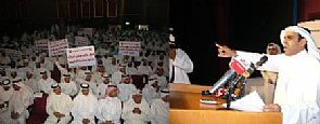 واضاف العنزي بان هذا هو اقل واجب اتجاه حكومة تعيش ازمة ضمير وعجز ارادة ولم تسع الى اعلاء قيمة الانسان الذي تصان به الاموال والقيم وذلك باقرار كادرنا وبقيت على عدم احساسها بواجبها اتجاه ما يحيط بالكويت من مخاطر تهدد امنها واقتصادها وجعلت نفسها مشاركا وحارسا لمقبرة الكوادر في مجلس الخدمة المدنية واننا سنكون اشد مقاومة وضراوة.