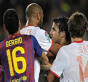 وبعد تلقي كانوتيه الإنذار ابتعد عن منطقة الجزاء ، إلا أن فابريغاس وجه له عبارة ما وعلى أثرها عاد إليه اللاعب المالي وجذبه من عنقه ، ما تسبب في نشوب المشاجرة التي انتهت بطرد لاعب إشبيلية وإنذار فابريغاس.