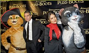 سلمى وأنطونيو يحتفلان مع 'القط ذو الحذاء'