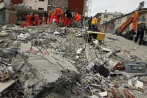 وتواصل فرق الإنقاذ البحث عن ناجين بين الأنقاض بعد يوم من إنقاذ مدرسين أثنين و طالب (18 عاما) أحياء من تحت مبنى منهار في ارجيس أحدى المدن الأكثر تضررا من الزلزال.
