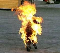 وقد حاول العديد من الأشخاص الذين كانوا بالقرب منه، إخماد النيران التي اشتعلت بجسده، الا أنهم لم يتمكنوا من ذلك.