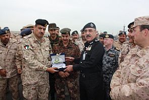 استقبل وكيل وزارة الداخلية المساعد لشئون أمن الحدود اللواء الشيخ/محمد اليوسف الصباح ، وفد كلية مبارك العبدالله للقيادة والأركان المشتركة الدورة (16) بقاعدة صباح الأحمد لخفر السواحل حيث تم الاطلاع على مهام وواجبات الإدارة العامة لخفر السواحل عن طريق الإيجاز الالكتروني من قبل رئيس قسم العمليات البحرية الرائد الركن بحري الشيخ/مبارك على الصباح وقام الوفد بجولة بحرية للاطلاع على المنشآت الحيوية الساحلية .