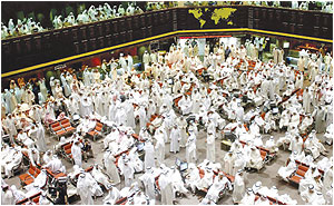 وبلغت كمية الاسهم المتداولة نحو 2ر573 مليون سهم بقيمة 1ر230 مليون دينار كويتي موزعة على 10979 صفقة نقدية .