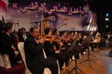 وكان المسرح قد تزين بالحضور قبل موعد الحفل بأكثر من ساعة، شباب ورجال ونساء وأطفال، فنانون وإعلاميون، ديبلوماسيون وسفراء ورجال دولة. وتلألأت خشبة المسرح وفوقها لافتة كبيرة تشير إلى 'الحفل الغنائي الوطني' فيما وقف الكورال في الخلفية ويتكون من مجموعة من الفتيات في عباءات خضراء لامعة، وغلى جوارهم الشباب في الزي الوطني. وقاد الفرقة الاوركسترالية المطعمة بالآلات الشرقية والإيقاعات الشعبية المايسترو محمد باقر، في جو من الانسجام والتناغم.