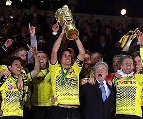 توج بوروسيا دورتموند بطلا لمسابقة كأس المانيا لكرة القدم بعد أن لقن منافسه بايرن ميونيخ درسا مهما في فنون اللعبة سيبقى في الذاكرة طويلا بفوزه عليه 5/2 في المباراة النهائية التي أقيمت مساء اليوم السبت على الملعب الاولمبي في برلين.