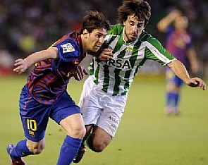 انتزع برشلونة تعادلا صعبا من أرض مستضيفه ريال بيتيس 2/2 في افتتاح مباريات الجول الثامنة والثلاثين الأخيرة من الدوري الإسباني الممتاز لكرة القدم مساء السبت على إستاد بينتو فيامارين في الأندلس.