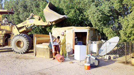 واصلت آليات وجرافات البلدية عملها باجتثاث التعديات مسفرة عن اقتلاع (226) في المحافظات الست وقامت البلدية فرق إزالة التعديات على أملاك الدولة حملتها الموسعة, وقال نائب رئيس التنسيق لفريق الإزالة ورئيس فريق الازالات بمحافظة الأحمدي دعيج السنافي، إن الفريق باشر مهامه صباح اليوم حيث قام فريق ازالات بإزالة (38) تعديا, ومن جانبه قال رئيس فريق الازالات بمحافظة حولي طارق القطان إن الفريق قام بإزالة (56) تعديا في عدة مناطق, وبدوره قال رئيس فريق الازالات بمحافظة الفر وانية رياض الربيع أن الفريق قام بإزالة (25) تعديا , وتوزيع (70) إنذارا لأهالي المنطقة, ومن جانبه أوضح رئيس فريق الازالات بمحافظة مبارك الكبير مشعل الصافي ان الفريق قام بإزالة (41) تعديا, وبين رئيس فريق الازالات بمحافظة العاصمة يوسف العوضي ان الفريق قام بإزالة (25) تعديا على أملاك الدولة , ومن جانبه قال رئيس فريق الازالات بمحافظة الجهراء عبدالله الميع ان الفريق باشر مهامه حيث بلغ عدد الازالات (41) تعديا في المناطق السكنية, وفي منطقة البر تم إزالة (282) تعديا.