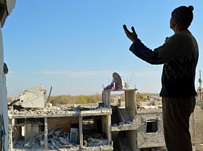 وأضاف: 'هذا الظالم يترنّح الآن في سوريا أمام الجيش الحر، وهذا بفضل الله وبفضل الشعوب وأهل الغيرة.. وأقول للثوار في سوريا أن يحذروا من الدخلاء والعملاء من الذين يدخلون بينهم وخطف الثمرات، وعليهم أن لا يسمحوا بتدخل كل دول الضد في سوريا باسم المساعدة لهم أو بأي اسم كان، أمريكا ترسل طيارة من غير طيار لضرب الثوار'.