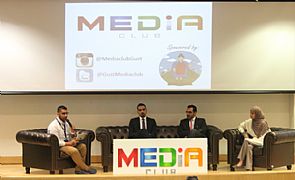 إختتم النادي الإعلامي بجامعة الخليج للعلوم والتكنولوجيا فعاليات أسبوعه الإعلامي الأول بندوة استضاف خلالها المذيعة المتألقة إيمان نجم، حيث حاورها المذيع علي نجم متناولا معها أبرز الأمور التي تواجه الإعلامي في بداية مسيرته نحو الشهرة في مجال الإعلام.