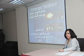 ونوهت أن التخصص حالياً في عامه الدراسي الأول إلا أنه يشهد إقبال طلابي نظرا لمجاله الوظيفي المتاح ولحاجة سوق العمل لهذا التخصص في كافة قطاعات العمل الحكومي والخاص بالإضافة إلى الإستفادة من خبراتهم على المستوى الإقليمي. كما أشارت الدكتورة سوزان البستان أن كلية العلوم شكلت لجنه مختصة من قسمي الكيمياء والعلوم البيولوجية برئاسة العميد المساعد للشؤون العلمية والدراسات العليا الدكتور سالم اليعقوب، وذلك لاعداد مقترح برنامج الماجستير في 'علم الأدلة الجنائية'، وتم رفع المقترح إلى كلية الدراسات العليا والتي بدورها استدعت الاستاذ الدكتور ولتر رو– من جامعة جورج واشنطن لتقديم استشارات وتوصيات الى اللجنه وتقييم البرنامج المقترح، كما ألقى محاضرات علمية في تطبيقات علم الادلة الجنائية، والبصمة الوراثية التي ذكر بأنها طغت على التقنيات الاخري في علم الادلة الجنائية.