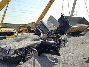 تلقت غرفة العمليات في الإطفاء بلاغاً عن وقوع حادث تصادم صباح اليوم على طريق الدائري السابع فتوجهت على الفور فرق اطفاء الجليب والاسناد والانقاذ الفني وعند الوصول تبين أن الحادث عبارة عن شاحنة تحمل الحصى الذي يستعمل في البناء قد انحرفت وانقلبت على سيارة مواطن عشريني وعند استخراجه تبين أنه قد فارق الحياة، حيث تواجد بالحادث رجال الداخلية ورجال الطوارئ الطبية .