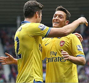صعد آرسنال الى الصدارة ولو مؤقتا بفوزه مضيفه على سندرلاند 1/3 في اللقاء الذي أقيم اليوم السبت على ملعب النور في الجولة الرابعة من الدوري الإنجليزي الممتاز لكرة القدم.