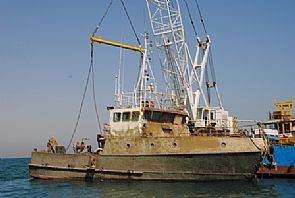 أعلن فريق الغوص الكويتي التابع للمبرة التطوعيه البيئية عن نجاح عملية انتشال وتعويم قاطرة سفن حديدية كبيرة بوزن 90 طنا وبطول 80 قدما والغارقة منذ شهرين بسبب حادث بحري مقابل ساحل الجليعة جنوب بحر الكويت والتي كانت تشكل كارثة بيئية وملاحية.