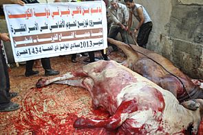 كويتيون يوزعون لحوم الأضاحي على فقراء غزة