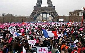 وقبل انطلاق المسيرة قال ميلانشون لشبكة تي.اف.1 'نحن اليساريين نحن دعاة المشاركة يحزننا ان نرى انفسنا، نحن الذين حاربنا دائما من اجل المساواة، نتعرض للتهميش الى حد ما، وان الذين يدافعون عن مصالح خاصة يحتلون الساحة كلها' في اشارة الى 'القبعات الحمر'.