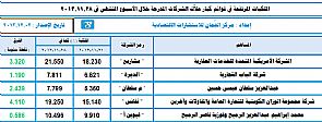 وبحسب تقرير مركز الجمان فقد تصدر عمليات رفع الملكيات المعلنة -خلال الأسبوع الماضي المنتهي في 28/11/2013 -رفع شركة مجموعة الوزان الكويتية للتجارة العامة والمقاولات وآخرين حصتهم في ' نفائس ' بمقدار 4.110 نقطة مئوية من 15.140 إلى 19.250% ، تلاها تعزيز الشركة الأمريكية المتحدة للخدمات العقارية مساهمتها في ' مشاريع ' بمقدار 3.320 نقطة مئوية من 18.230 إلى 21.550% ، علماً بأن الشركة الأمريكية تابعة لـ ' كتلة المشاريع ' ، كما رفع عبدالعزيز سلطان عيسى حسين حصته في ' م سلطان ' بمقدار 2.439 نقطة مئوية من 5.360 إلى 7.799% ، وأيضاً رفعت شركة الباب التجارية ملكيتها في ' الديرة ' بفارق 1.190 نقطة مئوية من 6.621 إلى 7.811% ، وأخيراً ، استمر – وللأسبوع الثالث على التوالي -محمد إبراهيم عبدالعزيز الرميح وفوزية ناصر الرميح ( كطرف واحد ) رفع حصتهما في ' قيوين أ ' بمقدار 0.586 نقطة مئوية من 9.910 إلى 10.496% .