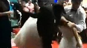 ونشر في موقع 'يوتيوب' المعركة التي دارت بين العروس وعشيقة العريس التي بدت حاملا، والتي تبادلت خلالها الاثنتان اللكمات والركلات، حتى وقعت كلتاهما أرضاً، فيما فشل العريس أو الحضور في تهدئة الأجواء المستعرة. اتهمت العروس منافستها بأنها تحاول ابتزاز الزوجين لشراء منزل جديد لها.