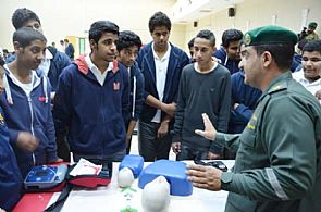 وفيما حث الطلبة على الاجتهاد في تحصيل العلم لتحقيق الطموحات الشخصية وخدمة الوطن، أوضح لهم شروط الانضمام إلى الحرس الوطني والمزايا التي يتمتع بها المنتسب، كما قام الرقيب اول جاسم اللهيدي بتعريف الطلبة بشروط ومتطلبات الانتساب للحرس الوطني وتوزيع بروشور يبين تفاصيل عملية التسجيل في الحرس الوطني.