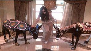 تناقلت مواقع التواصل الاجتماعي صورا نشرتها الفنانة المغربية ميساء مغربي على موقع 'تويتر'، تظهر فيها الفنانة إلى جانب تمثالين حجريين لحمارين. وأظهرت مغربي إعجابها بألوان التمثالين اللذين يزينا إحدى باحات الفنادق، وذلك بالتعليق قائلة 'بصراحة الألوان روعة'.