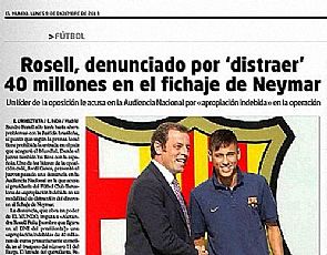 وبحسب ما نشرته الصحيفة فإن العضو المعارض بالنادي الكتالوني جوردي كاسيس قدم بلاغا أمام هيئة الرقابة الوطنية الإسبانية يتهم فيه روسيل بتحويل مسار 40 مليون يورو في عملية ضم لاعب نادي سانتوس السابق.