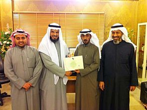 وأوضح المطيري بأن هذا التكريم جاء لدور المتلقم ومشاركته الفعالة في إنجاح برنامج إعداد المدرين ' مدرب الامتياز المعتمد ' والمنعقد خلال الفترة من 9 إلى 13 / 11/2013 وكان هذا التكريم بحضور رئيس الاتحاد الوطني لعمال وموظفي الكويت عبد الرحمن احمد السميط والمهندس فنيس العجمي مستشار الاتحاد الوطني .