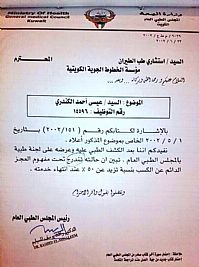 واضاف الفزيع لما كان الوزير وقد تم اختياره وزيراً للمواصلات والبلدية في التشكيل الوزاري الحالى و كانت الوظيفة المسندة إليه والتى تتطلب طبقا للقانون شروطا ومميزات تتعلق بالحالة الصحية للوزير وهو ما يؤكد بأن المشكو في حقه لم يقدم ضمن الأوراق والمستندات التى تطالب بعد الاختيار للقيام بهذه الوظيفة وحيث ان المشكو في حقه وقد تقاعد طبيا بما يفيد أن حالته الصحية الحرجة التى تجعله غير قادر على العمل وبالتالي غير قادر على الكسب فما بالنا بالعمل في وظيفة ذات حساسية وتتطلب قدرات خاصة، وهو ما يجعل عمل المشكو في حقه يمثل تزويراً ومخالفة للقانون.