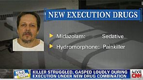 استغرق إعدام أمريكي مدان بجريمة اغتصاب وقتل ضحيته، نحو 24 دقيقة، عانى خلالها المحكوم عليه من الاختناق والتشنج العنيف لمدة 10 دقائق قبل ان يلفظ أنفاسه الأخيرة، في حكم إعدام بحقنة سامة استخدم فيها مزيج من العقاقير لأول مرة.