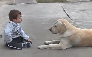 تناقلت الشبكة العنكبوتية مقطع فيديو مؤثر لكلبة من فصيلة 'لبرادور' تحاول مداعبة طفل أمريكى مصاب بأعراض متلازمة داون (منغولي)، حيث حاولت الكلبة خلال الفيديوالذى مدته 4 دقائق معالجة حالة التوحد والانطوائية التى يعانى منها الطفل عن طريق مداعبات مفعمة بعواطف الأمومة.