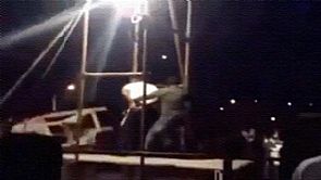 ووسط هتاف الجمهور وتصفيقهم كانت والدته تصرخ من جانبها لكن رجال الأمن لم يسمحوا لها بالصعود على المنصة لتوديع ابنها، ثم وجهوا ضربات بالأيدي إلى المحكوم بالإعدام ونفذوا الحكم فوراً.