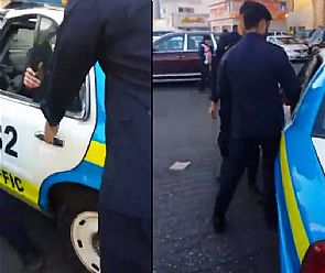 على مرأى ومسمع المارة، ضرب شرطي يعمل بالداخلية بالقانون عرض الحائط بعد قيامه باتلاف زجاج دورية مرور بعد ضبطه لمخالفته المرور.