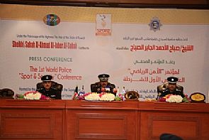 تحت رعاية سامية لحضرة صاحب السمو أمير البلاد الشيخ/ صباح الأحمد الجابر الصباح عقد رئيس الاتحادين الدولي الرياضي للشرطة الفريق/ أحمد نواف الأحمد الصباح اليوم الثلاثاء الموافق 4/3/2014 المؤتمر الصحفي لمؤتمر 'الأمن الرياضي' العالمي الأول للشرطة والذي أقامته وزارة الداخلية تحت إشراف الاتحاد الدولي الرياضي للشرطة وذلك بحضور أمين صندوق الاتحاد الدولي الرياضي للشرطة 'USIP' العقيد/عبد الرحمن عبد المحسن الحقان، ومدير المكتب الرئاسي للاتحاد الدولي الأمين المساعد العقيد/خالد علي النجار.