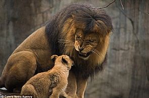 وقالت الصحيفة: إن الأسد 'مونغو' تراجع في البداية مع بداية الصغار في القفز من حوله، إلا أنه سرعان ما تأقلم مع وضعه المعيشي برفقة أشباله ووالدتهم 'نيكا' التي رافقتهم في لعبهم.