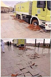 وأضافت الجامعة: 'ما حصل الثلاثاء الماضي لآلية الدفاع المدني في مناسبة لقاء الطلاب ومنسوبي الجامعة المفتوح مع أمير المنطقة، كان بسبب تصرُّف فردي من قائد الآلية، حيث صعد بالآلية التي يتجاوز وزنها أكثر من 30 طناً ومحملة بالمياه دون إذن من رجال الأمن الجامعي، وحاول الالتفاف فوق الساحة المعدَّة للمشاة أو السيارات الصغيرة فقط 'بما لا يتجاوز 2 طن'، وهو ما أدَّى إلى كسر أجزاء من بلاط الأرضية وانغراس الإطار الخلفي للآلية'.