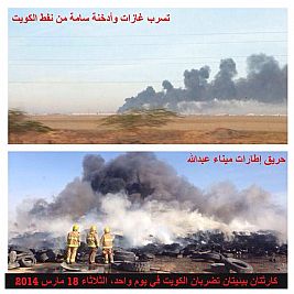 بدورها، قالت جماعة الخط الأخضر البيئية الكويتية ان كارثة بيئية تضرب البلاد اليوم الثلاثاء 18 مارس 2014 في جريمة بيئية جديدة لشركة نفط الكويت بعد تلويث حقول برقان للأجواء.