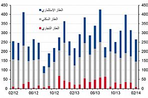 وانخفضت مبيعات القطاع التجاري بواقع 60٪ لتبلغ 8.4 مليون دينار في فبراير من 21 مليون دينار في العام الماضي، حيث تم تسجيل ثلاث صفقات فقط، أبرزها صفقة بيع مجمع تجاري في حولي بقيمة 4.8 مليون دينار. وتعتبر طبيعة المبيعات في هذا القطاع متقلبة على أساس شهري، ففيما شهد العام 2013 أداءاً استثنائياً، قد يرجع بعض هذا التحسن في الأداء الى عمليات الشراء من قبل المحافظ الحكومية.