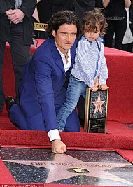 أورلاندو بلوم يستلم نجمة هوليوود مع ابنه 'فلين'