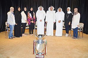 احتفل نادي اليونيسكو التابع لإدارة الأنشطة الثقافية والفنية بعمادة شئون الطلبة بفريق جامعة الكويت (طالبات) بمناسبة حصوله على المركز الاول في دوري مناظرات مؤسسات التعليم العالي، بحضور عميد شئون الطلبة د.عبدالرحيم ذياب، وعميد كلية العلوم الاجتماعية أ.د.عبدالرضا أسيري، ومدير إدارة الأنشطة الثقافية والفنية محمد الشداد، ومديرة إدارة الرعاية الاجتماعية فاطمة عبدالمجيد، ومراقب إدارة الأنشطة الثقافية والفنية فهد المطيري، وذلك ظهر يوم الاثنين الموافق 14 أبريل 2014، على مسرح إدارة الأنشطة الثقافية والفنية بالشويخ.