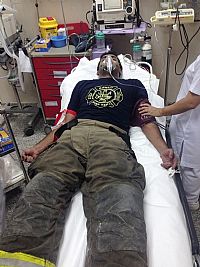 اصيب احد رجال الإطفاء بضيق التنفس والاجهاد الحراري اثناء تعامله مع حادث حريق منزل عصر امس في منطقة الظهر ، وكانت غرفة عمليات الإدارة العامة للإطفاء تلقت بلاغا يفيد بنشوب حريق منزل بمنطقة الظهر هرع للتعامل معه رجال اطفاء مركزي مبارك الكبير والقرين بقيادة النقيب غانم الهاجري والنقيب محمد السبتي واثناء تعامل رجال الإطفاء مع الحريق اصيب العريف مسعود محمد بضيق التنفس والإجهاد الحراري وتم نقله لمستشفى العدان عن طريق الطوارئ الطبية، فيما اخمد رجال الإطفاء حريق المنزل الذي نشب في الدور الثاني.