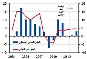 • من المتوقع أن تحافظ الإيرادات النفطية على قوتها رغم اننا قد نرى بعض التراجع في الانتاج النفطي خلال العام 2014. كما ستساهم هذه الإيرادات في تحقيق فوائض ضخمة في المالية العامة والميزان التجاري. ومن المتوقع أن يستمر الإنفاق الحكومي في الارتفاع ولكن بوتيرة أبطأ من السابق وبتركيز أكبر على الإنفاق الاستثماري. كما من المتوقع أن يرتفع معدل التضخم قليلا خلال العام 2014 ليصل الى 3.5٪.