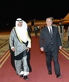 وكان في استقباله رئيس بعثة الشرف المرافقة محافظ الاحمدي الشيخ فواز الخالد الحمد الصباح
