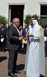 وحضر المباحثات الوفد المرافق للشيخ صباح الخالد والذي يضم مدير إدارة أوروبا في وزارة الخارجية السفير وليد الخبيزي وسفير الكويت لدى هولندا حفيظ العجمي والرئيس التنفيذي لمؤسسة البترول الكويتية نزار العدساني والمدير العام لهيئة تشجيع الاستثمار المباشر الشيخ الدكتور مشعل جابر الأحمد الصباح ونائب مدير إدارة مكتب النائب الأول لرئيس مجلس الوزراء ووزير الخارجية السفير صالح سالم اللوغاني ومدير الهيئة العامة للبيئة بالوكالة رجاء البصيري.