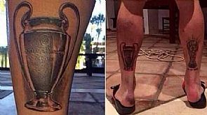 رسم الإسباني سيرجيو راموس، لاعب فريق ريال مدريد، وشم على قدمه، كأس دوري أبطال أوروبا، وعلى قدمه الأخرى كأس العالم.