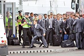 تعرضت بعثة المنتخب الانجليزي صباح اليوم لموقف طريف وغريب في نفس الوقت عندما اتجهت إلى مطار لوتون استعدادا للذهاب إلى ميامي لاقامة معسكر هناك قبيل بداية المونديال ، حيث لوحظ وجود فرد غريب في البعثة يرتدي نفس الملابس الرسمية التي يرتديها نجوم انجلترا المدعوون للعب في المونديال ، ورغم أنه كان يرتدي نفس الزي إلا أنه كُشف سريعا وسط دهشة من جميع أفراد البعثة .