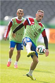 وغاب ريبيري يوم الاحد عن المباراة الودية التي تعادلت فيها فرنسا مع ضيفتها الباراجواي بهدف لكل منهما في نيس ضمن استعدادتها لمونديال البرازيل، وسيحاول نجم بايرن جاهداً لكي يكون جاهزاً من أجل المباراة التحضيرية الأخيرة ضد جامايكا الأحد المقبل.