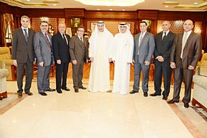 كما استقبل الشيخ فيصل الحمود مدير عام فندق كراون بلازا رامي هيكل يرافقه عدد من مدراء الإدارات بالفندق الذين قدموا له التهنئة.