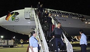 وهبطت طائرة المنتخب الألماني بمدينة سالفادور قبل أن ينتقل الفريق إلى مقر إقامته بمدينة بورتو سيجيورو التي تقع في ولاية باهيا عبر رحلة جوية قصيرة.