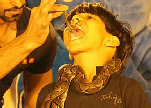 ذكرت صحيفة 'سبق' السعودية أن طفلًا سعوديًا يتمتع بموهبة استثنائية تجعله يدخل الثعابين والعقارب السامة في فمه ويتلاعب مع الكوبرا وكأنها مجرد حيوان «أليف».