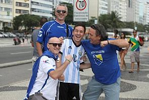 حرص العشرات من المشجعين على التقاط الصور التذكارية مع شاب برازيلي شبيه بالنجم الأرجنتيني ليونيل ميسي، قبل مباراة منتخب التانجو أمام البوسنة والهرسك اليوم في أولى لقاءات الفريقين في بطولة كأس العالم.