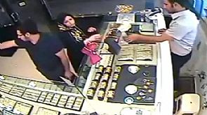 وكان دور الرجل المرافق للمرأة في هذه العملية كما يبدو من مشاهدة الفيديو أنه يقوم بنصح رفيقته لاختيار السوار المناسب لها في مشهد أوحى للبائع بأنه عمل طبيعي يقوم به كل زوج وزجته يومياً.